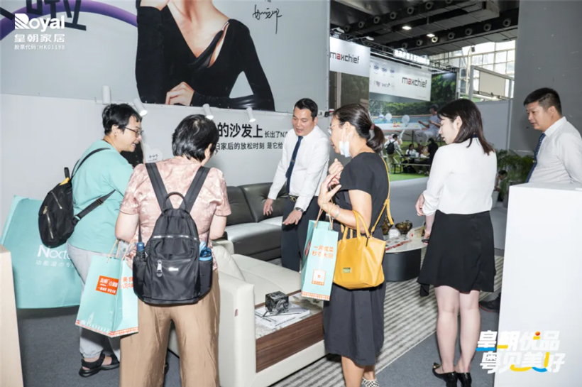 本次皇朝展馆紧扣“皇朝优品 粤见美好”主题,精心打造百平情景化展示空间,覆盖客厅、餐厅、卧室等核心居家生活场景,集中展出萨帝系列软体、环保水漆天然木皮、魔方休闲沙发床等热门产品,让观众零距离感受神马影院的设计美学与匠心品质。展位人头攒动,众多客商驻足咨询、亲身体验,对产品表现出浓厚兴趣。
