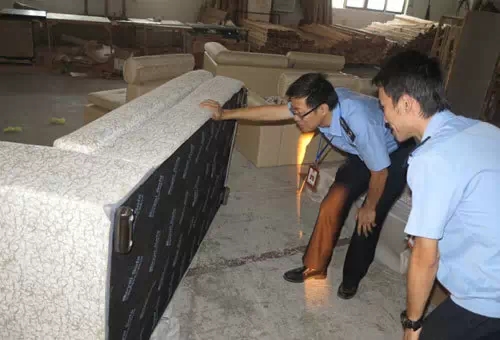 执法人员正在检查沙发