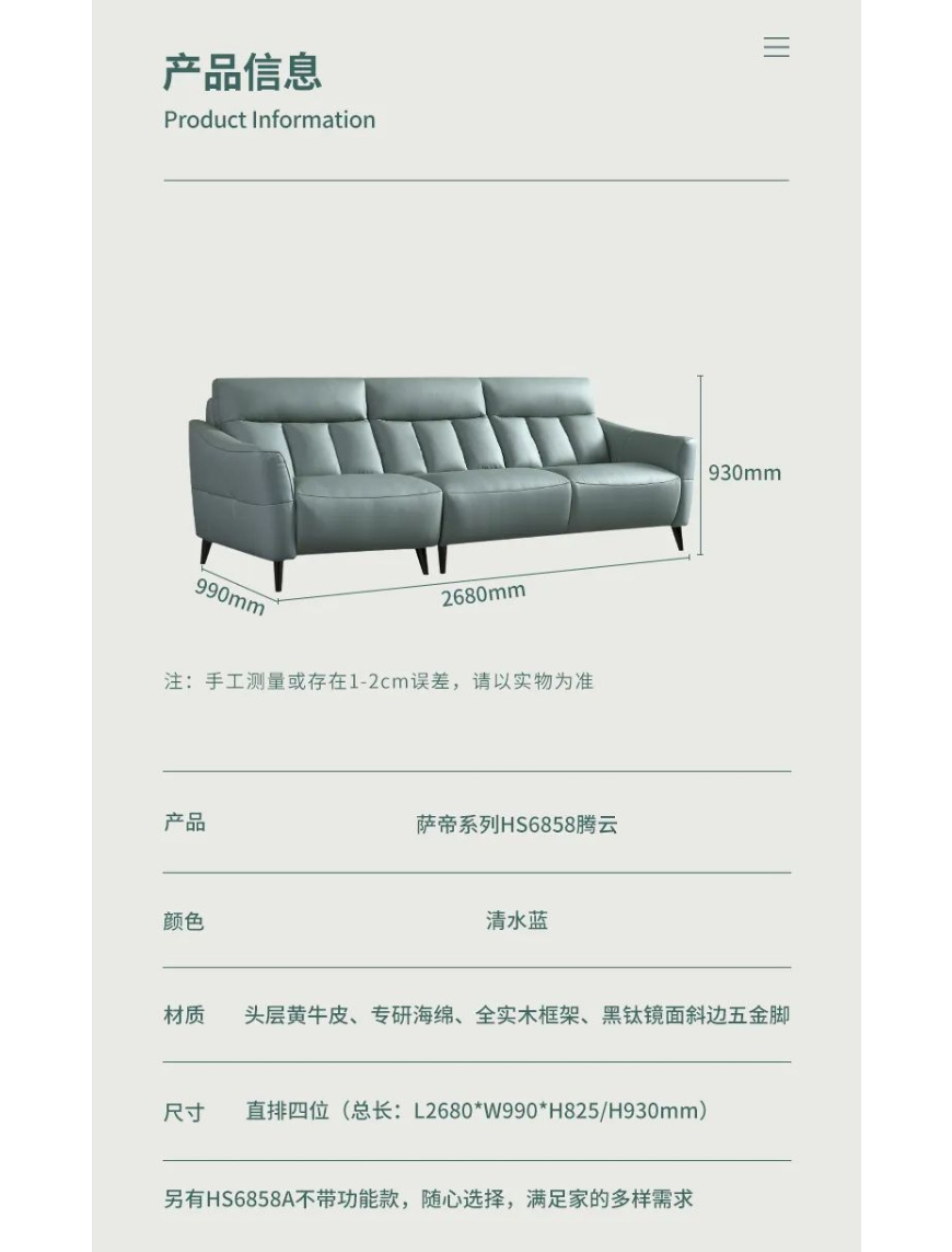 头层真皮|三折立体靠背|百搭色系
