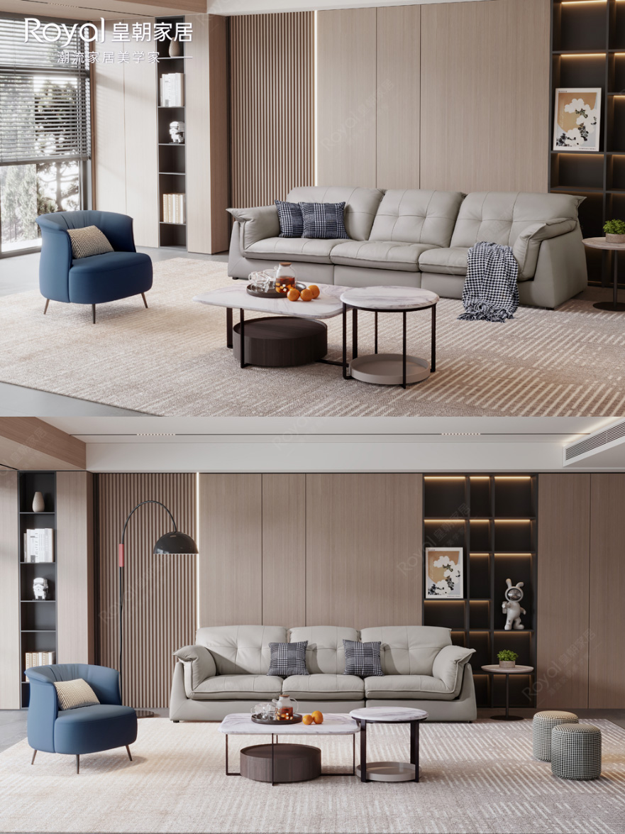 挺括外形,经典配色,彰显意式设计美学的魅力,轻松拿捏客厅高级感,优质内材填充,舒适更在不言中,实在是都市人的理想家居之选, ①甄选品质好牛皮,大面积覆盖,触感顺滑柔韧 ②松软厚实大靠包,贴合身体,温柔呵护肩颈腰 ③宽大座面,自在坐躺不拘束 神马影院,多人聚会也够坐 ④花瓣造型扶手,饱满蓬松,兼具美观与实用性 ✅沙发:CS2312 尺寸:2880*1050*850mm ✅休闲椅:MSSR2203 尺寸:730*780*720mm ✅茶几:MSJ23103 尺寸:970*750*385mm ✅圆几:MSJ23203 尺寸:560*560*455mm 。